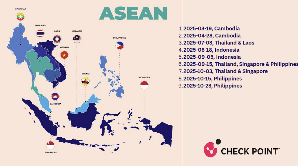 Desde marzo de 2025, Check Point Research ha rastreado múltiples campañas de Amaranth-Dragon dirigidas a Camboya, Tailandia, Laos, Indonesia, Singapur y Filipinas. Cada operación tenía un alcance muy limitado, centrándose generalmente en uno o dos países a la vez.